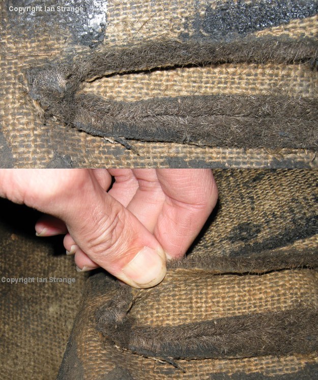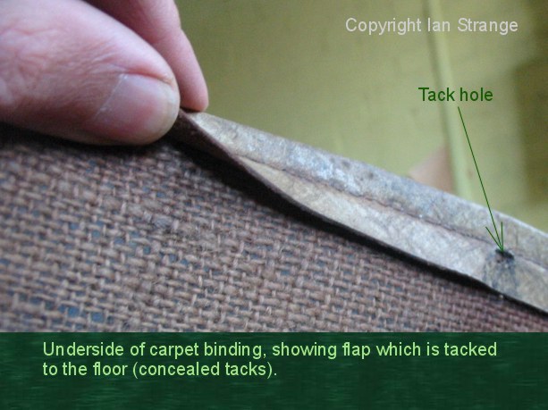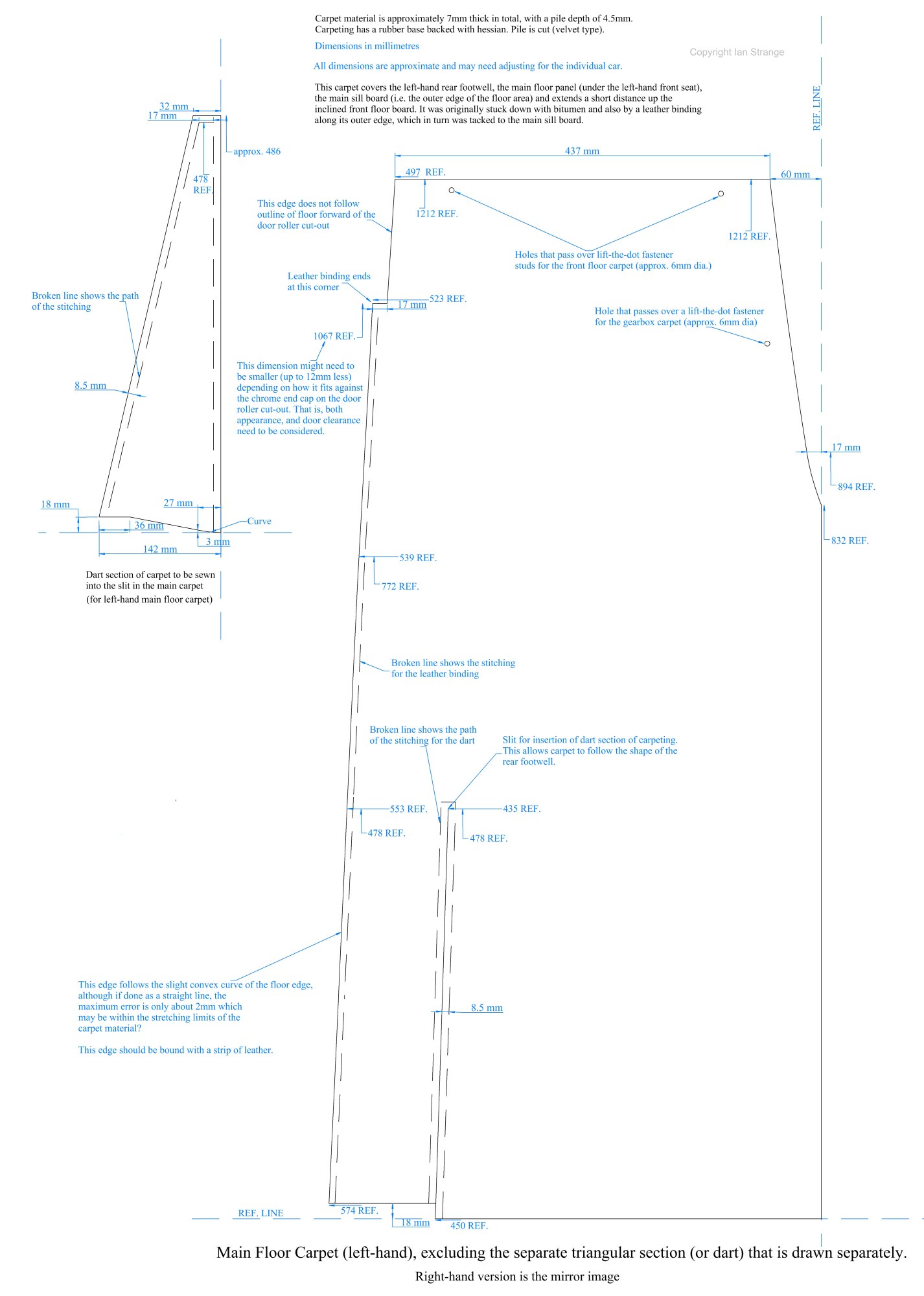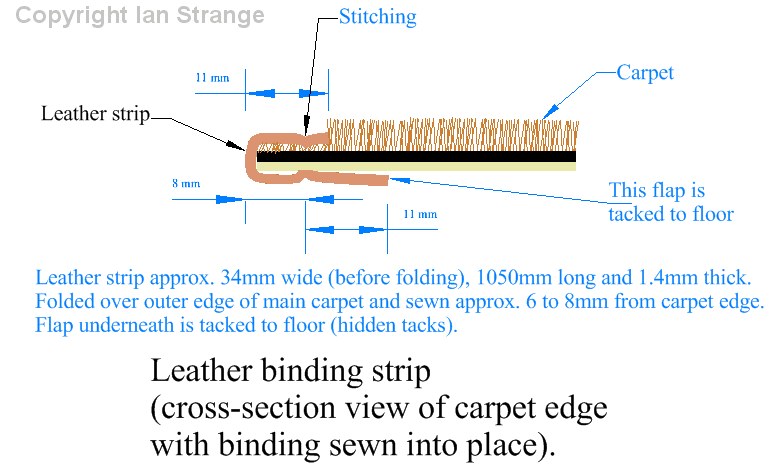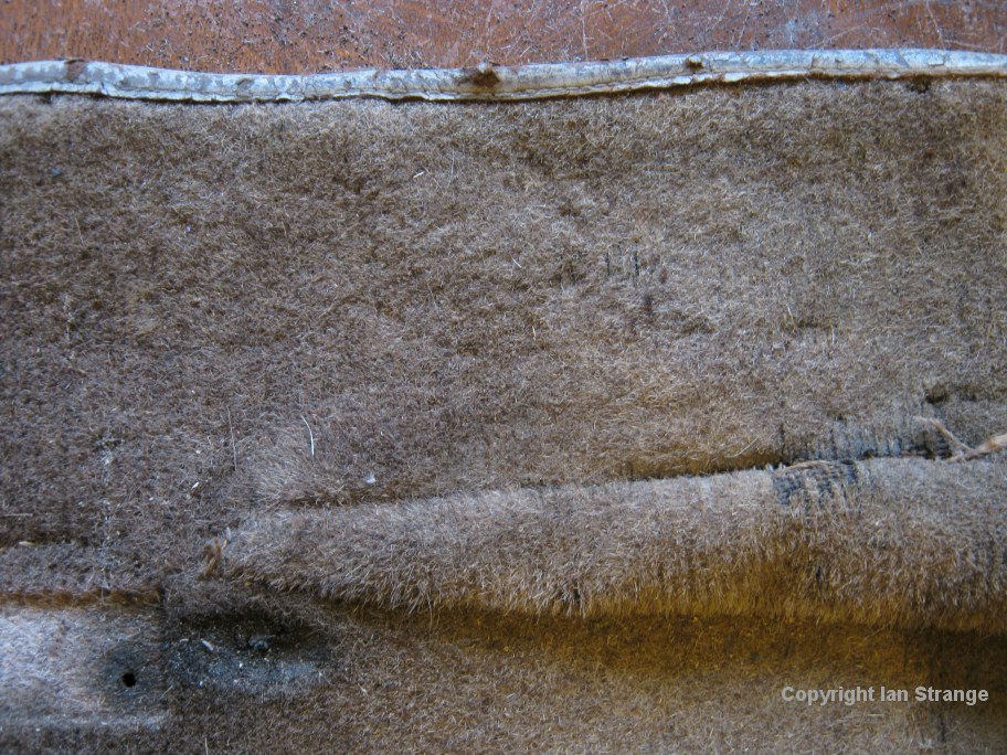 The photos below show the sharp end of the dart sewn into the carpet slit to allow this carpet to follow the contours of the rear footwell.