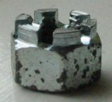 Not to be confused with castle nuts, these are thick nuts with slots cut into one face to accommodate a split-pin. As with full nuts, these could be either single or double chamfered (usually single chamfered in the 1940s).