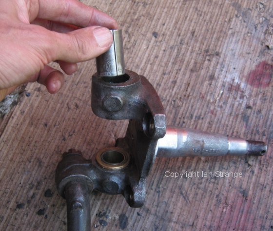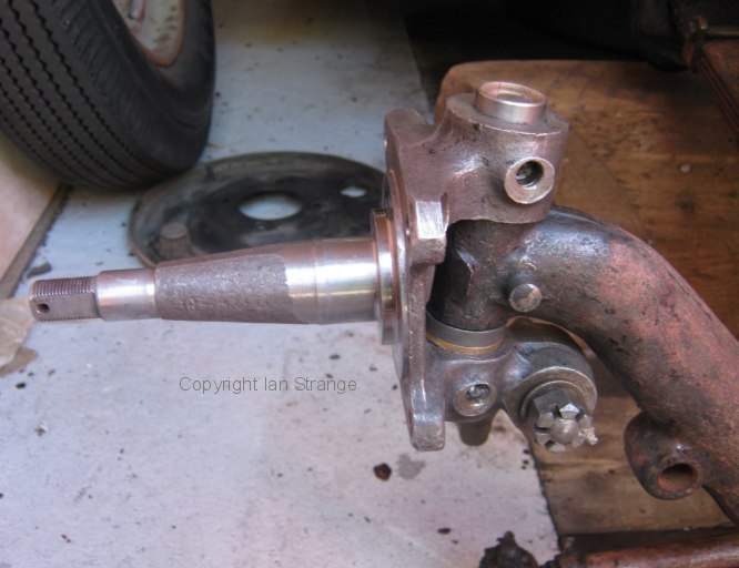 Then I repainted the front end of the chassis, which completes work on the chassis frame. Rather more interesting is my current project: Front axle. New kingpin bushes pressed in and very carefully honed. They need to be a precision fit. I crack-tested the stub axles and hubs, with success.
