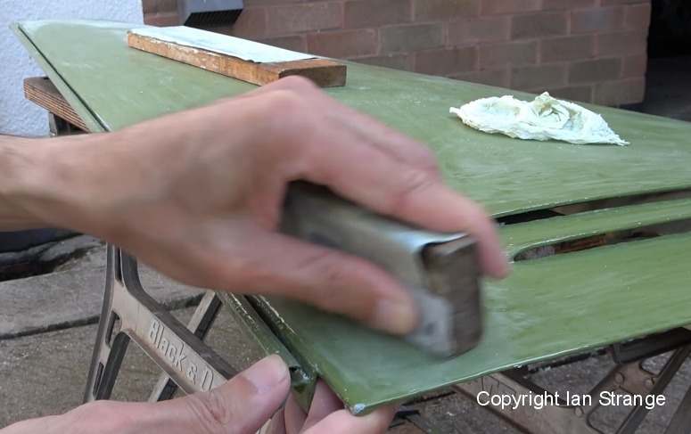 The next improvement was in my method of laying off the brush strokes for the top coat (green) and the final clear coats. When blending into the previously painted section, I move the brush towards that previous section and gradually lift the brush. My earlier mistake was to lower the brush into the previous section then brush away from it.