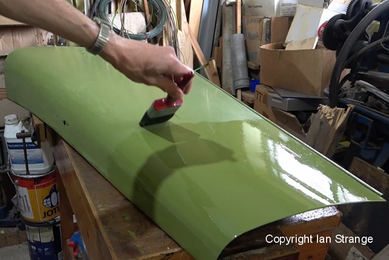 With engine parts cluttering the workshop, I decided to do some more coach painting. In 2021 I had attempted to coach paint the bonnet and boot-lid, but I was not satisfied with the results. This time, I spent many hours getting the surface perfectly smooth, mostly using 400 grit wet/dry paper. Firstly using it wet, and then tackling difficult details with dry paper, so that I could see the surface easily.