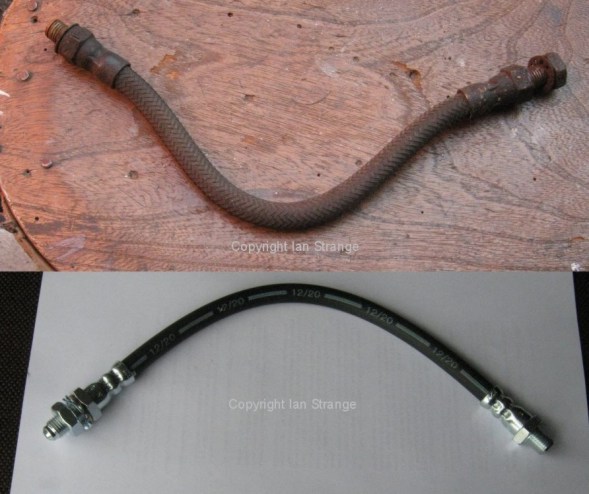 I obtained replacements for the unique hoses from Powertrack, and I received them the next day. I was a bit bemused to find that I needed a Whitworth spanner at one end, an AF spanner for the other (and the lock nut). Remember to place the copper washer at the cylinder end. I obtained wheel cylinders from Land Rover specialist Craddocks. These came with mounting studs with UNF threads, and the bleed nipple on one needed a Whitworth spanner and the other one, metric!