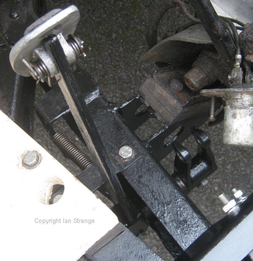 Important note: If there is excessive slack in the rear mechanical brake linkages, the balance-link (near the pedal) will tilt too far to act as a balance-link. That is, it will act as a pull-rod, actuate the front brakes, while the rears might be doing little or nothing. Further down this page, I've explained how to set up the adjustments.