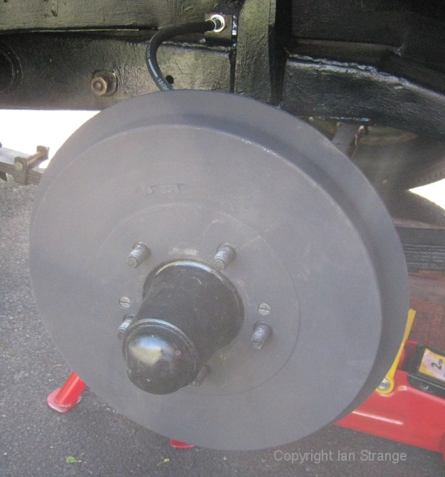 After working on the brakes, be sure to press the pedal down while stationary, otherwise the pedal might sink right down when you first try to stop! The brakes should release properly without dragging, albeit with the linings touching very gently. Check for leaks and joint tightness. I repainted the drums with a POR-15 exhaust manifold paint, after removing rust and treating with phosphating solution. I used a blow-torch to dry the drum prior to painting.