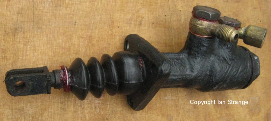 The first thing to check, is on the master cylinder. Measure from the mounting bracket on the chassis to the centre of the clevis pin. This should be 3 3/16" (81mm). If you pull the bellows back, and slacken the lock-nut, you can turn the push-rod with pliers. If the master cylinder is off the car, then the dimension from the mounting flange to the pin centre, should be 3 5/16" (84mm).
