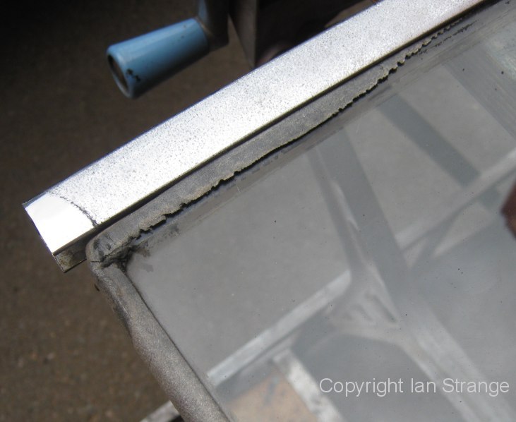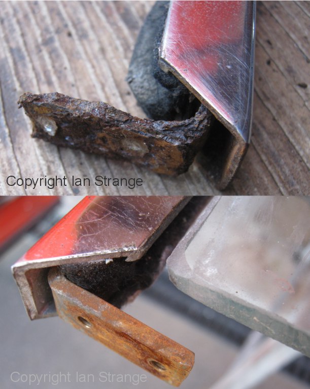 Above is shown the lower and upper internal steel brackets for the corners of the side window (early non-opening type).