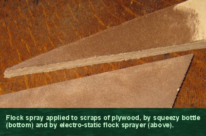 Frost does an inexpensive kit that does not use any electrical equipment. Instead, a squeezy bottle sprays flock onto the glued surface. My first attempt at using this was only moderately successful, and it probably requires practice to gain the correct technique. The instructions say that one must squeeze the flock at high velocity for the best effect.