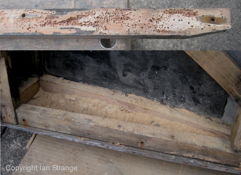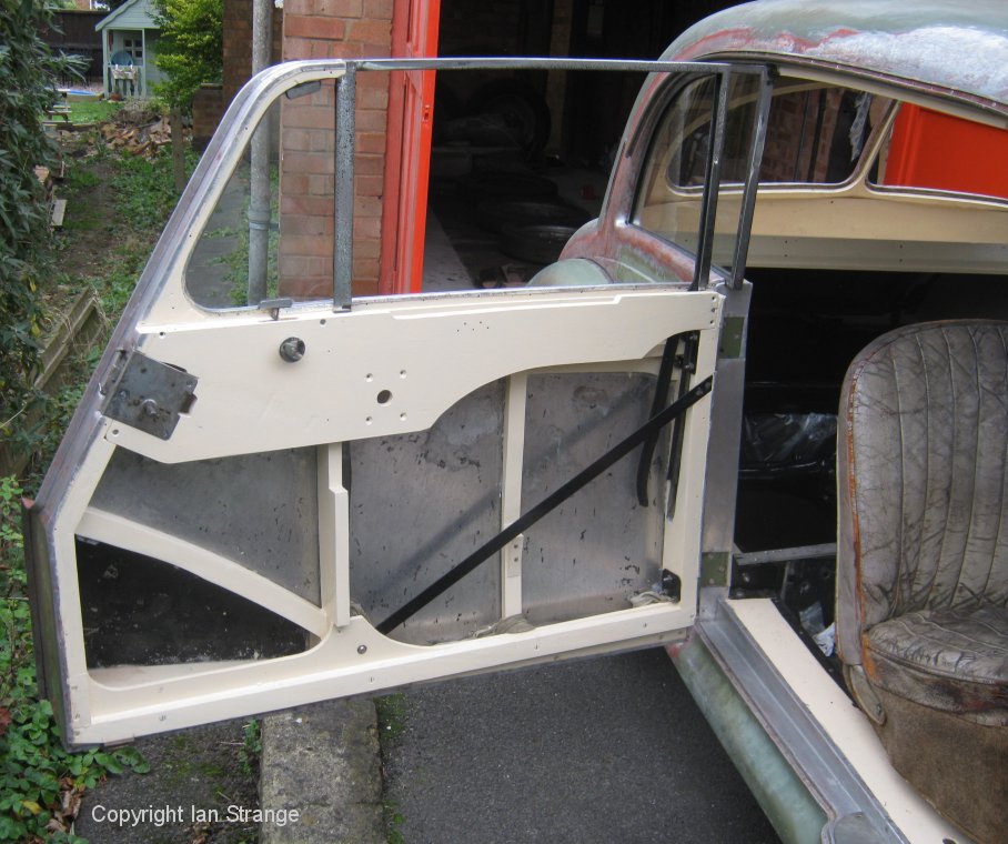 Driver's door: The woodworm had done rather more damage than I had realised initially (rascally fellows!). Nearly all the bottom of the door frame was destroyed, and what they had missed out, rot had taken care of.