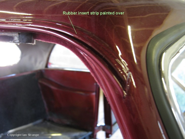 Front end of guttering. Some ACs have the guttering extended down to the scuttle, possibly to prevent water running inside the door when car is stationary.