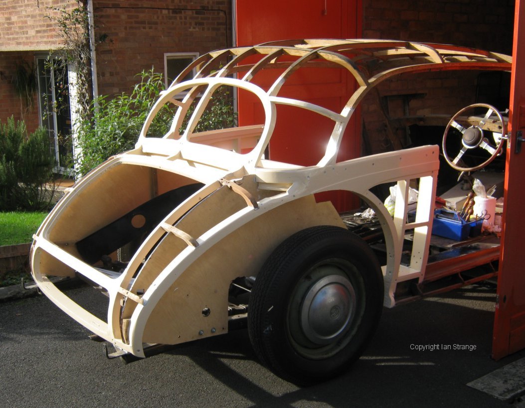 The painted rear half of the wood frame gleaming in the sunshine.