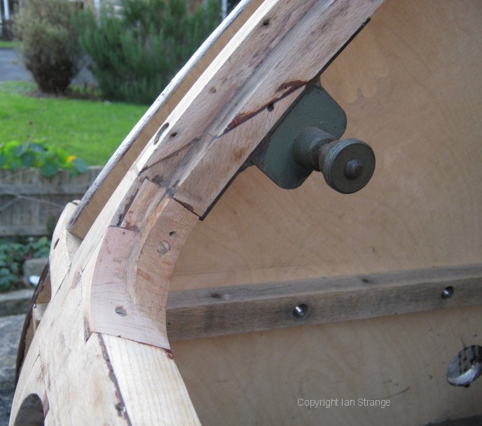 Bottom-left corner of boot opening. The steel bracket on the curved pillar, reinforces a joint and also acts as a hook for the bootlid-stay.